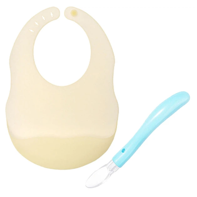 Силіконовий слинявчик 2Life Жовтий та силіконова ложка Блакитна (vol-10507)