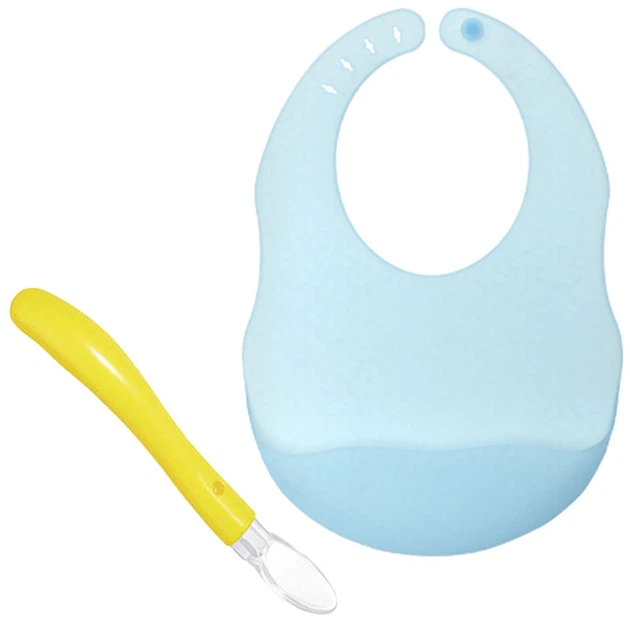 Силіконовий слинявчик 2Life Блакитний та силіконова ложка Жовта (vol-10508)