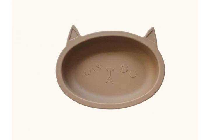 Силіконова дитяча тарілка глибока "Котик" Капучіно (1317) (2731085337)