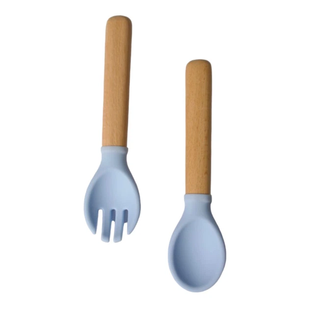 Прилади силіконові дитячі OldBro ложка та вилка з дерев'яною ручкою, SKY blue