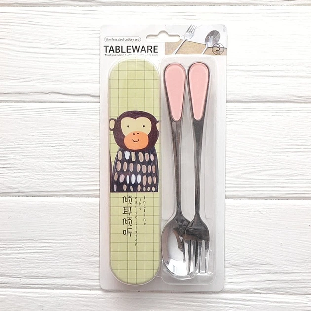 Прилади металеві дитячі ложка та виделка крабіки рожеві PKS-P7