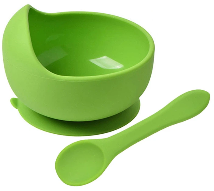 Набір силіконова кругла тарілка для перших страв та ложка 2Life Y7 2 шт Зелений (vol-10175)