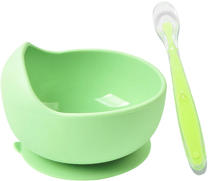 Набір силіконова кругла тарілка для перших страв та ложка 2Life Y3 2 шт Зелений (vol-10174)
