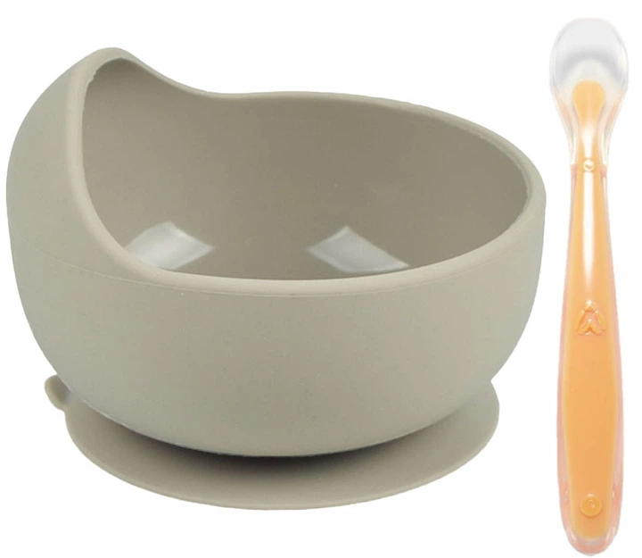 Набір силіконова кругла тарілка для перших страв та ложка 2Life Y20 2 шт Сірий (vol-10169)