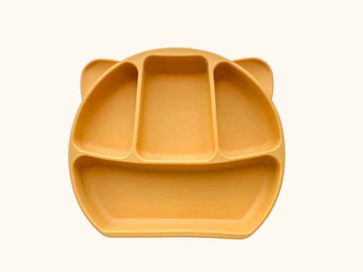 Силіконова дитяча тарілка 4-х секційна "Ведмедик" Гірчиця (1036) (2731250135)