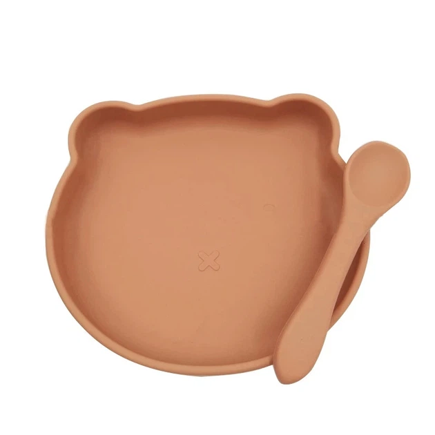 Силіконова дитяча тарілка 4-х секційна "Ведмедик" Сіра (1) (2731085321)