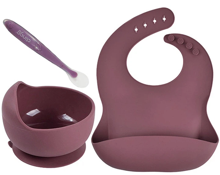 Набір силіконового посуду 2Life Y16 миска для супу ложка та слинявчик Бордовий v-12866