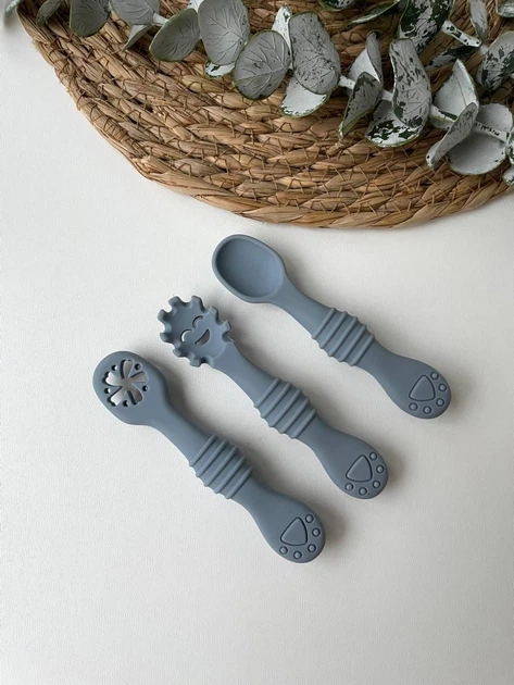 Ложки для початку прикорму набір з 3 шт pre-spoon для першого прикорму сіро-синій ПАКУНОК МАЛЮКА
