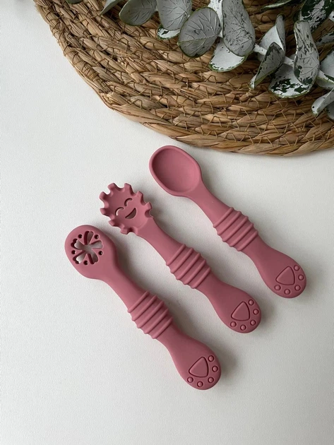 Ложки для початку прикорму набір з 3 шт pre-spoon для першого прикорму малиновий ПАКУНОК МАЛЮКА