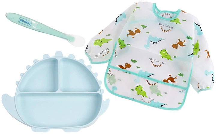 Набір посуду 2Life Трисекційна тарілка Динозавр Y5 ложка та нагрудник Блакитний n-12894