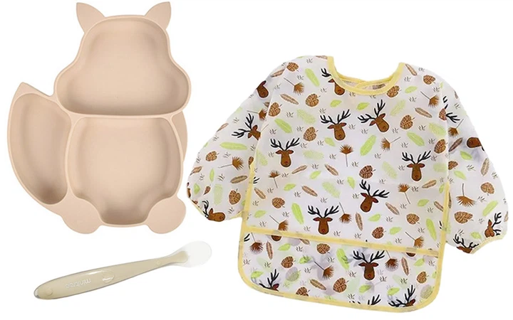 Набір посуду 2Life Трьохсекційна тарілка Білка Y15 ложка та слинявчик з принтом олені v-12914