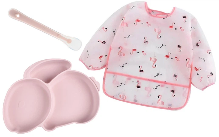 Набір посуду 2Life Трисекційна тарілка Кролик Y26 ложка та нагрудник з рукавами та принтом Фламінго n-12903