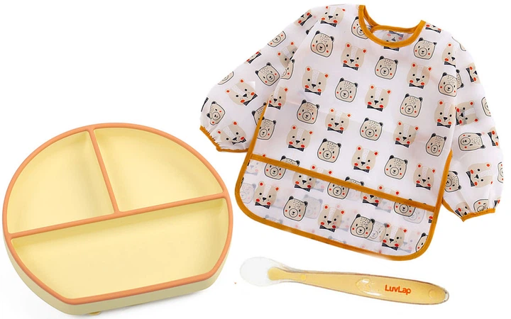Набір посуду 2Life Трисекційна тарілка Y11/25 ложка та слинявчик-нагрудник Помаранчевий n-12882