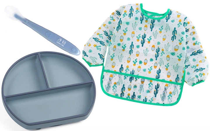 Набір посуду 2Life Трисекційна тарілка Y21/10 ложка та слинявчик-нагрудник з кактусами v-12887