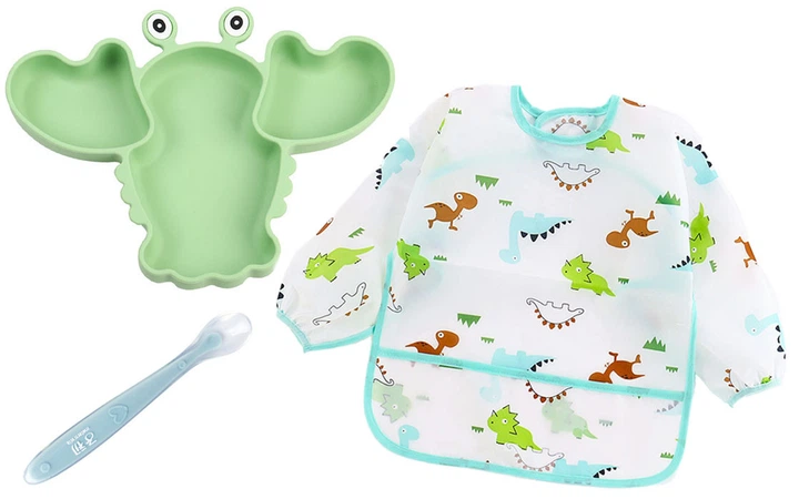 Набір посуду 2Life Трисекційна тарілка Рак Y3 ложка та нагрудник з рукавами та принтом Динозаври n-12904