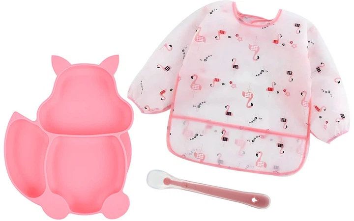 Набір посуду 2Life Трисекційна тарілка Білка Y12 ложка та слинявчик з принтом Рожевий n-12915