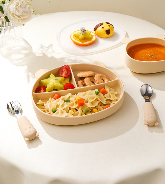 Тарілка дитяча силіконова Ведмедик на 3 секції на присосці, колір гірчичний