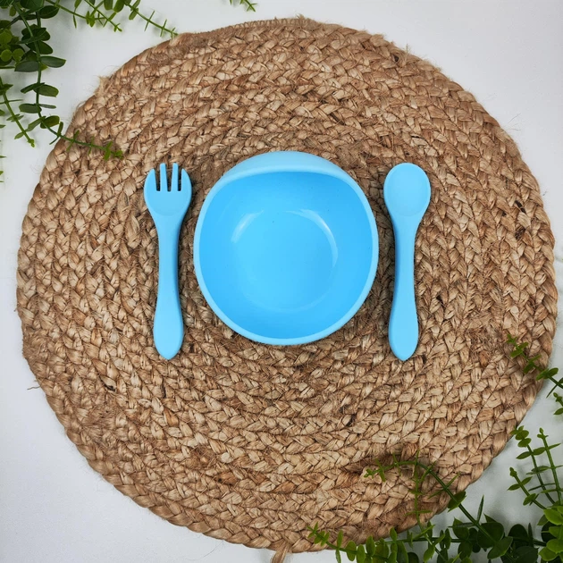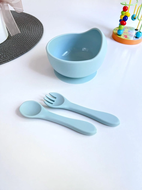 Комплект для прикорму супниця, силіконова вилка та ложка Блакитний
