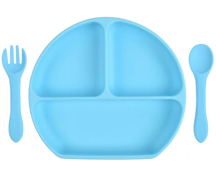 Набір Y9 силіконова трисекційна тарілка, ложка, вилка Синій (vol-9918)