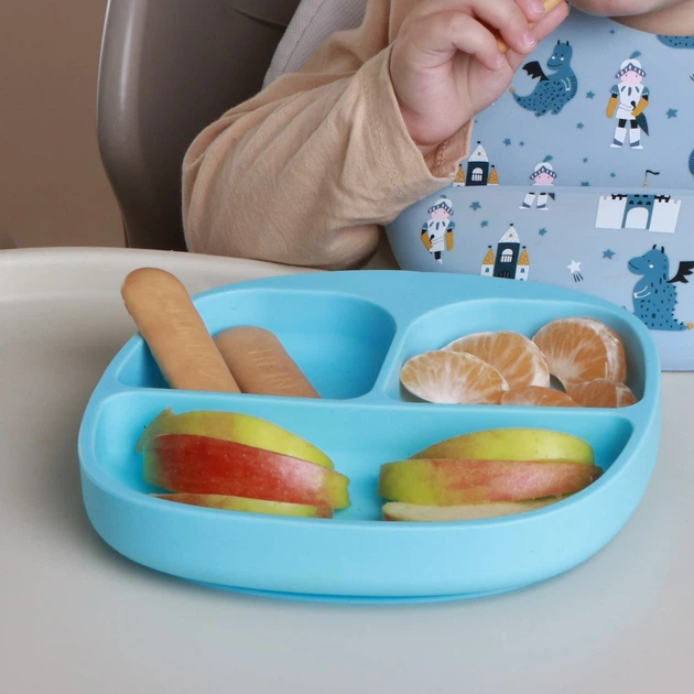 Тарілка дитяча силіконова на три секції на присосці колір Лід ВР408, посуд для дітей