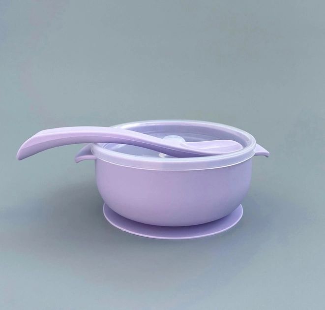 Супниця дитяча силіконова з ложкою і кришкою Фіолетова