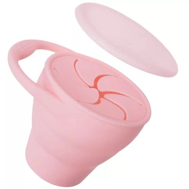 Дитяча силіконова склянка для закусок снечниця з кришкою (без бісфенолу А) рожевого кольору