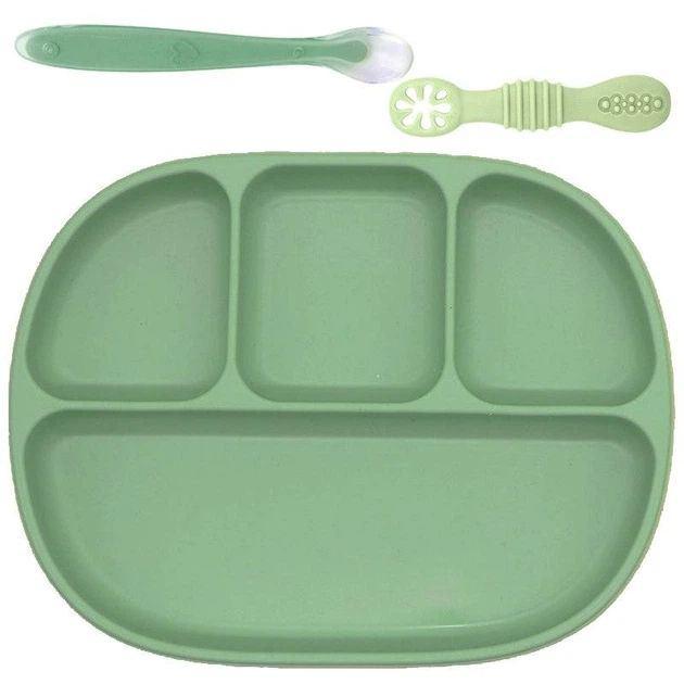 Набір силіконового посуду для дітей 2Life тарілка D7 ложка ложка прес для каші Зелений v-12647