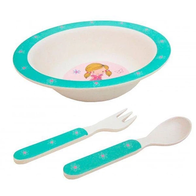 Набір посуду для дітей Fissman 3 предмети з бамбука з малюнком для їжі та обіду столові прилади (571942)