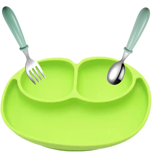 Набір посуду 2Life силіконова тарілка-коврик і набір столових приборів Зелений n-11790