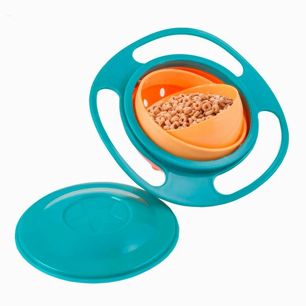 Дитяча тарілка непроливайка глибока 17см пластик блакитна нова MA356