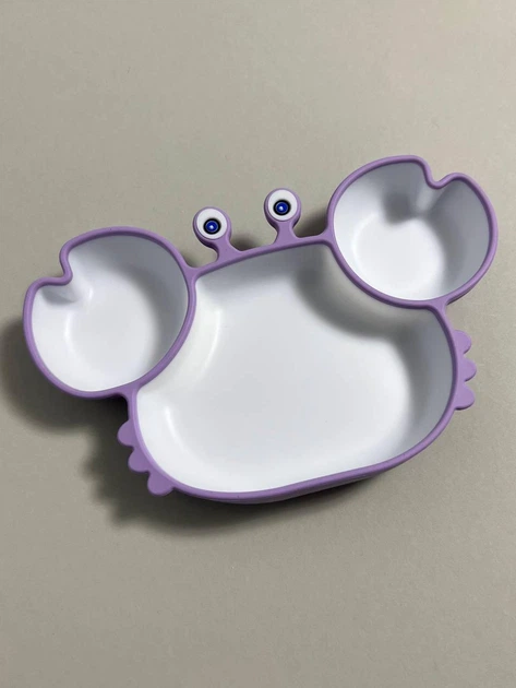 Силіконова секційна дитяча тарілка на присосці "Краб з білою серединкою" Фіолеовий