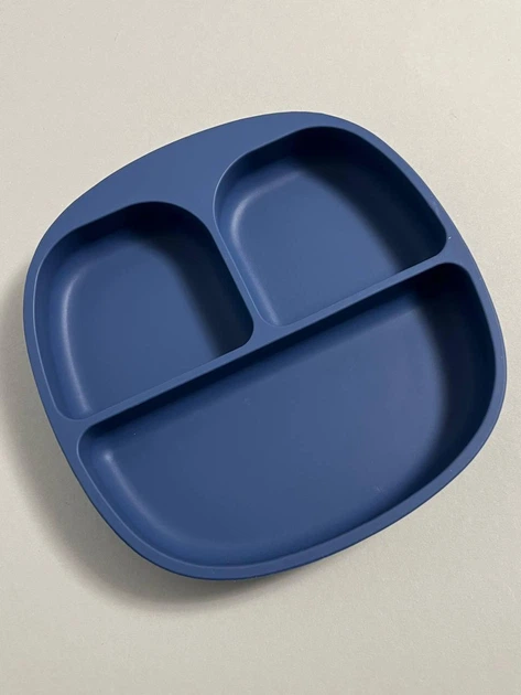 Силіконова секційна дитяча тарілка на присосці "Квадрат" Темно синій