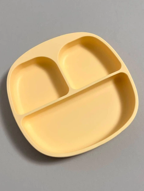 Силіконова секційна дитяча тарілка на присосці "Квадрат" Жовтий
