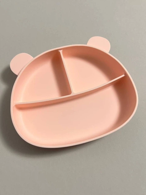 Силіконова секційна дитяча тарілка на присосці "Ведмедик" Персик