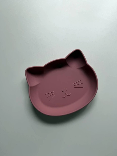 Плоска дитяча тарілка силіконова на присосці без секцій котик Румянець