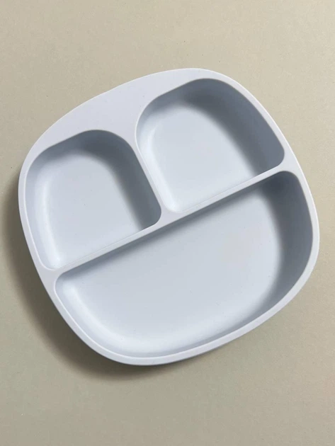 Силіконова секційна дитяча тарілка на присосці "Квадрат" Лід