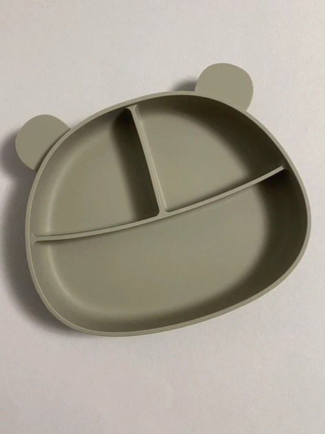 Силіконова секційна дитяча тарілка на присосці "Ведмедик" Світлий хакі
