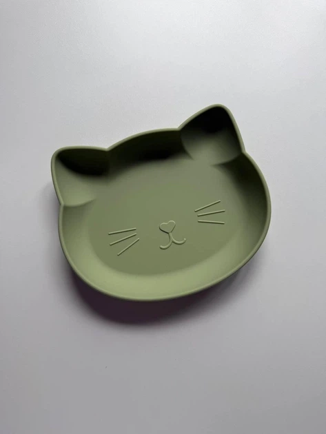 Плоска дитяча тарілка силіконова на присосці без секцій котик Оливка