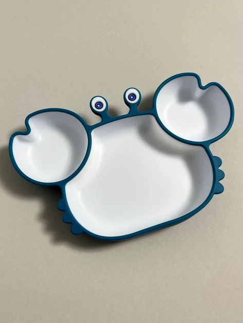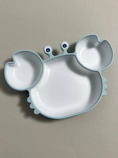 Силіконова секційна дитяча тарілка на присосці "Краб з білою серединкою" Блакитний