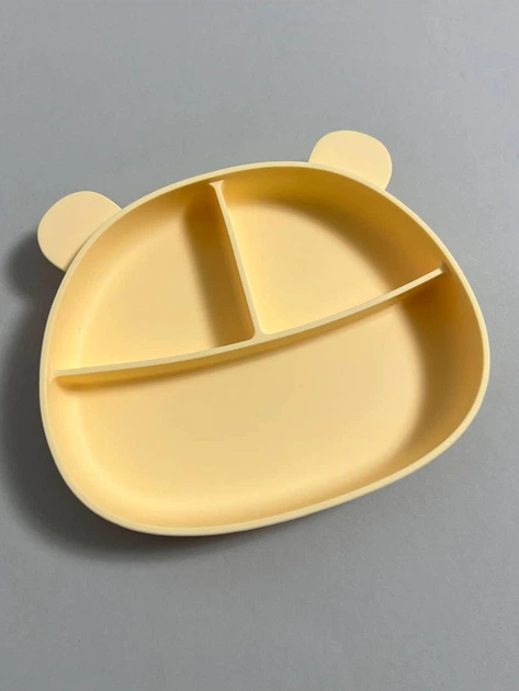 Силіконова секційна дитяча тарілка на присосці "Ведмедик" Жовтий