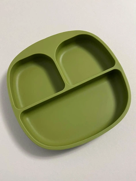 Силіконова секційна дитяча тарілка на присосці Оливка