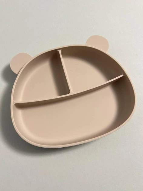 Силіконова секційна дитяча тарілка на присосці "Ведмедик" Капучино