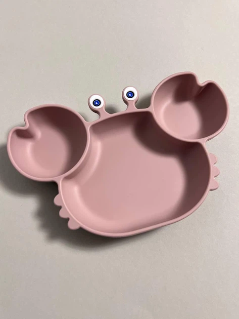Силіконова секційна дитяча тарілка на присосці "Краб однотонний" Пудра