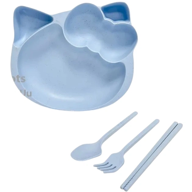 Дитяча тарілка Геллоу Кітті з екопластику (біопластик) блакитна