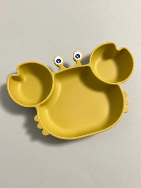 Силіконова секційна дитяча тарілка на присосці "Краб однотонний" Гірчиця