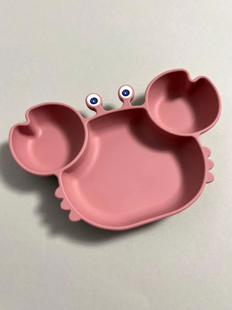 Силіконова секційна дитяча тарілка на присосці "Краб однотонний" Румянець