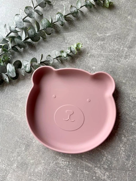 Силіконова тарілка на присосці без секцій Ведмедик пудра Пакунок малюка