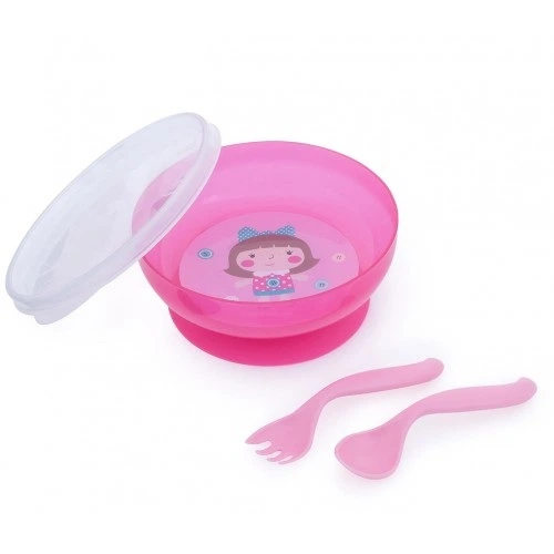 Тарілка на присосці з ложкою та вилкою (малинова)(0109Малина)