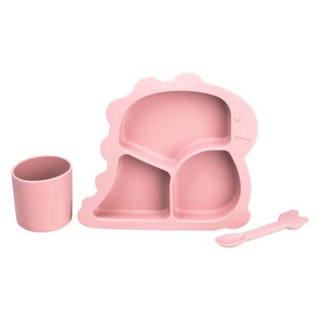Дитячий набір силіконового посуду TS Kitchen 3 предмети Рожевий (HP34545P)