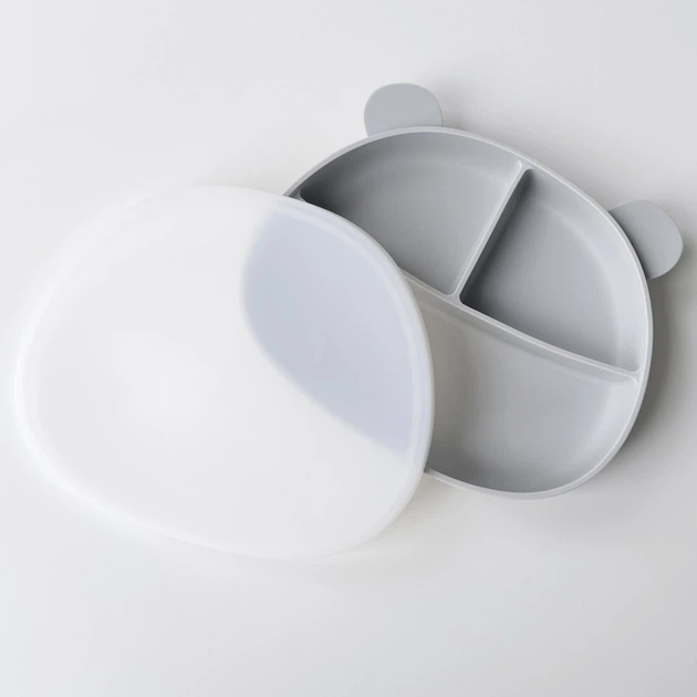 Силіконова секційна тарілка з вушками Баловень Light Gray